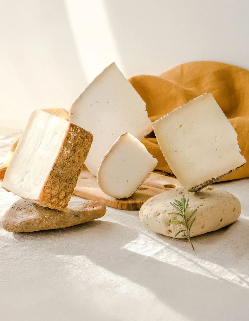 No trabajamos con leche estandarizada ni procesos automatizados. Utilizamos leche recién ordeñada, maduramos cada pieza lentamente y afinamos la corteza a mano con aceite de oliva virgen extra. Sin ceras, sin colorantes, sin trucos: solo queso real que expresa su origen.